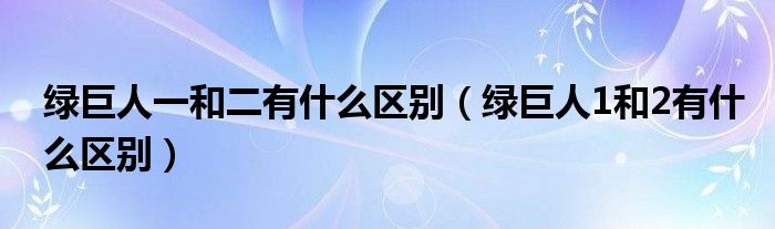 大家好,小晋来为大家解答以下问题,关于绿巨人一和二有什么区别,绿巨人1和2有什么区别很多人还不知道,今天让我们一起来看看吧!