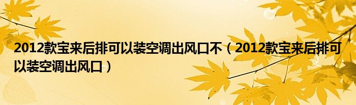 关于2012款宝来后排可以装空调出风口不,2012款宝来后排可以装空调出风口这个很多人还不知道,今天菲菲来为大家解答以上的问题,现在让我们一起来看看吧!