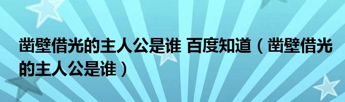 关于凿壁借光的主人公是谁 百度知道,凿壁借光的主人公是谁这个很多人还不知道,今天菲菲来为大家解答以上的问题,现在让我们一起来看看吧!