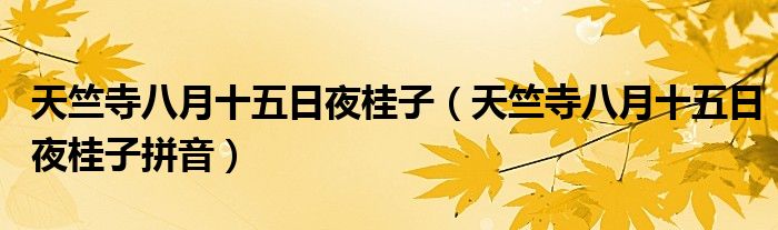 关于天竺寺八月十五日夜桂子,天竺寺八月十五日夜桂子拼音这个很多人还不知道,今天菲菲来为大家解答以上的问题,现在让我们一起来看看吧!