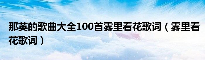 关于那英的歌曲大全100首雾里看花歌词,雾里看花歌词这个很多人还不知道,今天菲菲来为大家解答以上的问题,现在让我们一起来看看吧!