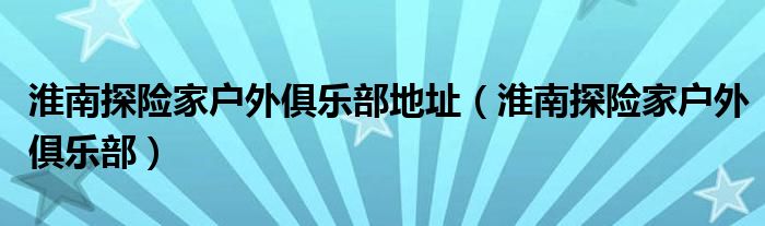 1、淮南探险家户外地址:淮南市谢家集区蔡新路十中旁 立新街道 电话:0554-3361230 怎么给你说呢。