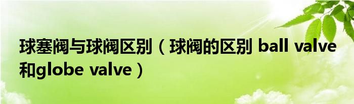 关于球塞阀与球阀区别,球阀的区别 ball valve 和globe valve这个很多人还不知道,今天菲菲来为大家解答以上的问题,现在让我们一起来看看吧!