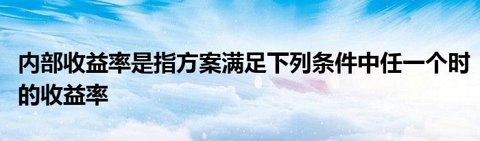 关于内部收益率是指方案满足下列条件中任一个时的收益率这个很多人还不知道,今天菲菲来为大家解答以上的问题,现在让我们一起来看看吧!