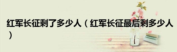 关于红军长征剩了多少人,红军长征最后剩多少人这个很多人还不知道,今天菲菲来为大家解答以上的问题,现在让我们一起来看看吧!