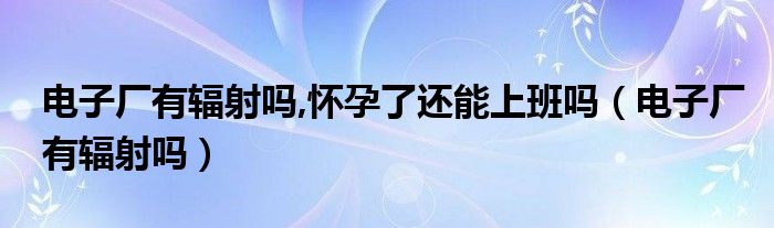 大家好,小晋来为大家解答以下问题,关于电子厂有辐射吗,怀孕了还能上班吗,电子厂有辐射吗很多人还不知道,今天让我们一起来看看吧!