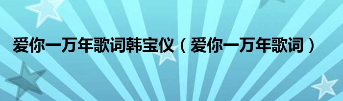 关于爱你一万年歌词韩宝仪,爱你一万年歌词这个很多人还不知道,今天菲菲来为大家解答以上的问题,现在让我们一起来看看吧!