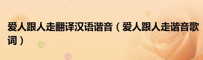 关于爱人跟人走翻译汉语谐音,爱人跟人走谐音歌词这个很多人还不知道,今天菲菲来为大家解答以上的问题,现在让我们一起来看看吧!