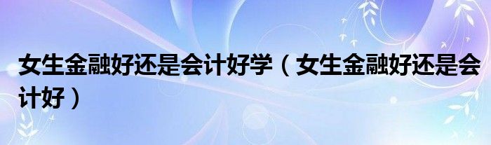 大家好,小晋来为大家解答以下问题,关于女生金融好还是会计好学,女生金融好还是会计好很多人还不知道,今天让我们一起来看看吧!