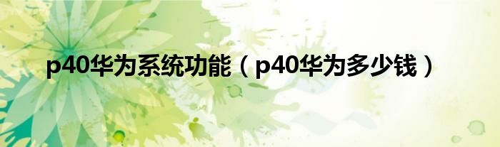 大家好,小飞来为大家解答以上问题,p40华为系统功能,p40华为多少钱很多人还不知道,现在让我们一起来看看吧!