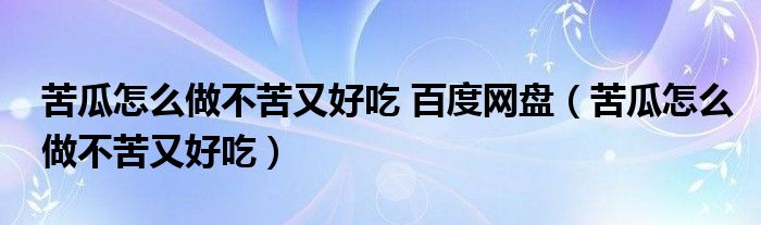 关于苦瓜怎么做不苦又好吃 百度网盘,苦瓜怎么做不苦又好吃这个很多人还不知道,今天菲菲来为大家解答以上的问题,现在让我们一起来看看吧!