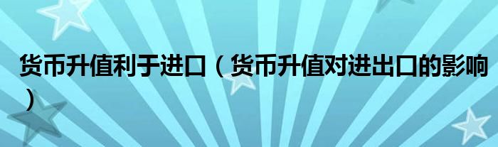 关于货币升值利于进口,货币升值对进出口的影响这个很多人还不知道,今天菲菲来为大家解答以上的问题,现在让我们一起来看看吧!
