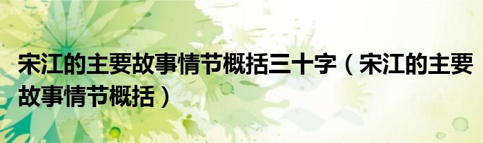 关于宋江的主要故事情节概括三十字,宋江的主要故事情节概括这个很多人还不知道,今天菲菲来为大家解答以上的问题,现在让我们一起来看看吧!