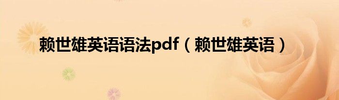 关于赖世雄英语语法pdf,赖世雄英语这个很多人还不知道,今天菲菲来为大家解答以上的问题,现在让我们一起来看看吧!