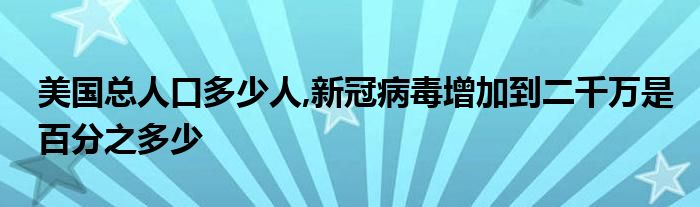 关于美国总人口多少人,新冠病毒增加到二千万是百分之多少这个很多人还不知道,今天菲菲来为大家解答以上的问题,现在让我们一起来看看吧!