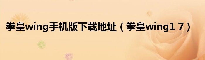 拳皇wing手机版下载地址(拳皇wing1 7)
