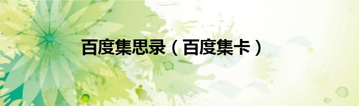 大家好,雨雨来为大家解答以上问题,百度集思录,百度集卡很多人还不知道,现在让我们一起来看看吧!