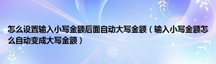 怎么设置输入小写金额后面自动大写金额(输入小写金额怎么自动变成大写金额)