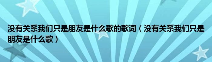没有关系我们只是朋友是什么歌的歌词,没有关系我们只是朋友是什么歌这个很多人还不知道,小飞来为大家解答以上的问题。现在让我们一起来看看吧!