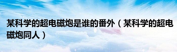 大家好,小晋来为大家解答以下问题,关于某科学的超电磁炮是谁的番外,某科学的超电磁炮同人很多人还不知道,今天让我们一起来看看吧!