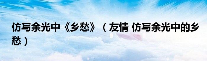 关于仿写余光中《乡愁》,友情 仿写余光中的乡愁这个很多人还不知道,今天菲菲来为大家解答以上的问题,现在让我们一起来看看吧!