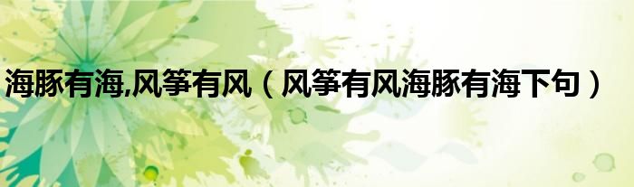 大家好,小晋来为大家解答以下问题,关于海豚有海,风筝有风,风筝有风海豚有海下句很多人还不知道,今天让我们一起来看看吧!