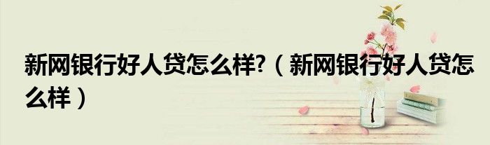 大家好,小晋来为大家解答以下问题,关于新网银行好人贷怎么样?,新网银行好人贷怎么样很多人还不知道,今天让我们一起来看看吧!