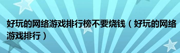 好玩的网络游戏排行榜不要烧钱,好玩的网络游戏排行很多人还不知道,乐乐来为大家解答以上问题,现在让我们一起来看看吧!