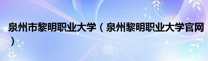 泉州市黎明职业大学(泉州黎明职业大学官网)