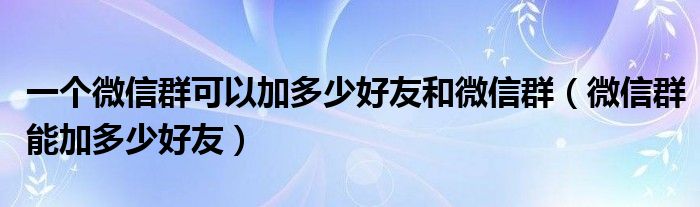 大家好,小晋来为大家解答以下问题,关于一个微信群可以加多少好友和微信群,微信群能加多少好友很多人还不知道,今天让我们一起来看看吧!