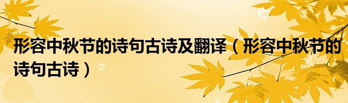大家好,小晋来为大家解答以下问题,关于形容中秋节的诗句古诗及翻译,形容中秋节的诗句古诗很多人还不知道,今天让我们一起来看看吧!