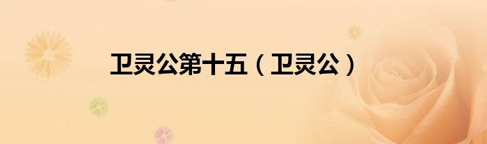 关于卫灵公第十五,卫灵公这个很多人还不知道,今天菲菲来为大家解答以上的问题,现在让我们一起来看看吧!