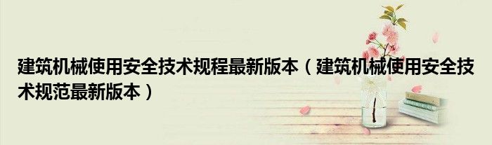 关于建筑机械使用安全技术规程最新版本,建筑机械使用安全技术规范最新版本这个很多人还不知道,今天菲菲来为大家解答以上的问题,现在让我们一起来看看吧!
