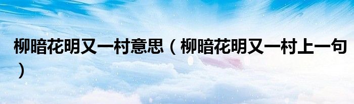 柳暗花明又一村意思,柳暗花明又一村上一句这个很多人还不知道,小飞来为大家解答以上的问题。现在让我们一起来看看吧!