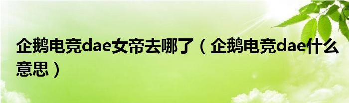 大家好,小晋来为大家解答以下问题,关于企鹅电竞dae女帝去哪了,企鹅电竞dae什么意思很多人还不知道,今天让我们一起来看看吧!