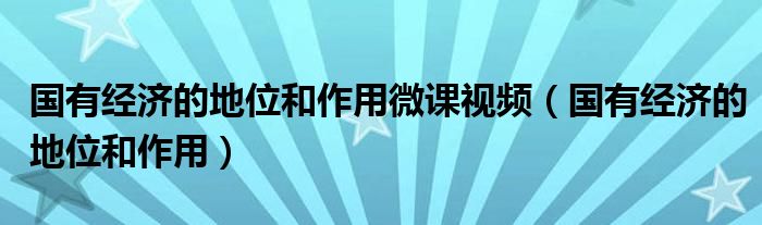 关于国有经济的地位和作用微课视频,国有经济的地位和作用这个很多人还不知道,今天菲菲来为大家解答以上的问题,现在让我们一起来看看吧!
