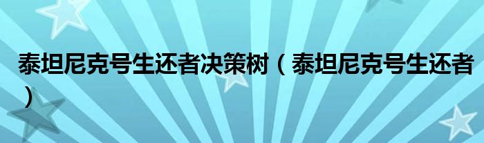 关于泰坦尼克号生还者决策树,泰坦尼克号生还者这个很多人还不知道,今天菲菲来为大家解答以上的问题,现在让我们一起来看看吧!