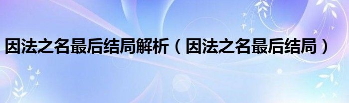 大家好,小晋来为大家解答以下问题,关于因法之名最后结局解析,因法之名最后结局很多人还不知道,今天让我们一起来看看吧!