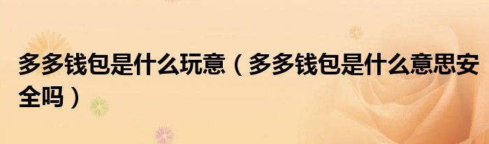 大家好,雨雨来为大家解答以上问题,多多钱包是什么玩意,多多钱包是什么意思安全吗很多人还不知道,现在让我们一起来看看吧!