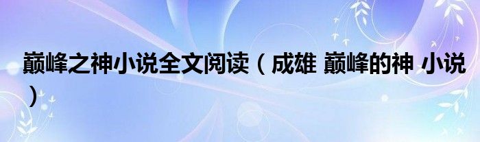 巅峰之神小说全文阅读(成雄 巅峰的神 小说)
