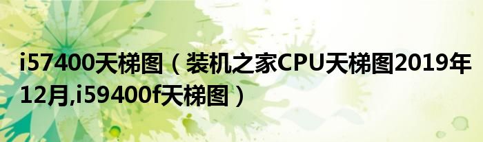 大家好,小常来为大家解答以上问题。i57400天梯图,装机之家CPU天梯图2019年12月,i59400f天梯图很多人还不知道,现在让我们一起来看看吧!