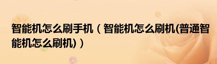 大家好,小常来为大家解答以上问题。智能机怎么刷手机,智能机怎么刷机(普通智能机怎么刷机)很多人还不知道,现在让我们一起来看看吧!