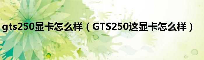1,GTS250这显卡怎么样 :这款显卡属于NVIDIA入门级。512M显存,显存位宽192位,电源接口6pin。可以看720P电影,非常清晰。可以玩CF单机版,小游戏。配27寸显示器分辨率可达1920x1080。上网分辨率有1280x1024。