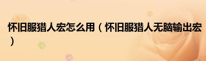 怀旧服猎人宏怎么用(怀旧服猎人无脑输出宏)