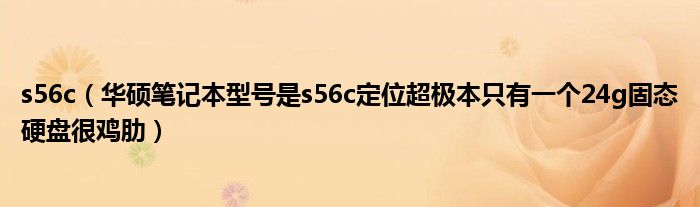 大家好,小常来为大家解答以上问题。s56c,华硕笔记本型号是s56c定位超极本只有一个24g固态硬盘很鸡肋很多人还不知道,现在让我们一起来看看吧!