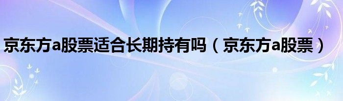 关于京东方a股票适合长期持有吗,京东方a股票这个很多人还不知道,今天菲菲来为大家解答以上的问题,现在让我们一起来看看吧!
