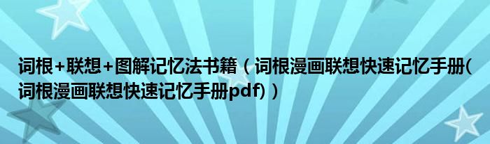大家好,小常来为大家解答以上问题。词根+联想+图解记忆法书籍,词根漫画联想快速记忆手册(词根漫画联想快速记忆手册pdf)很多人还不知道,现在让我们一起来看看吧!