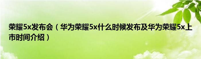 1,华为荣耀5x什么时候发布 华为荣耀5x上市时间介绍:2015年10月27日晚间,华为荣耀在成都举行发布会,正式推出了千元旗舰机畅玩5X。该机采用5.5英寸1080P显示屏,搭载高通 骁龙616(MSM8939)处理器,内置2/3GB运行内存和32GB存储空间,选用前置500万像素和后置1300万像素的摄像头组合,电池容量为3000mAh。