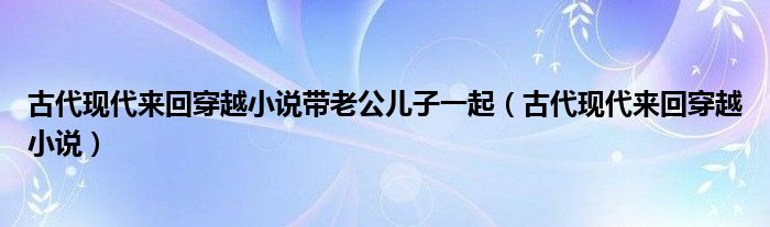 大家好,小晋来为大家解答以下问题,关于古代现代来回穿越小说带老公儿子一起,古代现代来回穿越小说很多人还不知道,今天让我们一起来看看吧!