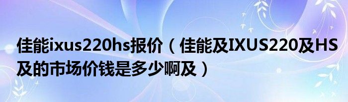 佳能IXUS 220 在IXUS卡片机系列中,用来拍照夜景/黑暗的地方画质是相当出色的,但白天拍照《特别是室内拍照从窗外入来光线照的物体》照片出现暴光反白严重,需要手动修正才行,拍摄分辨率高清影片效果还可以。现在市场行货¥1400左右。总体算这相机性价比还可以,值得出手......。希望这些答案能帮到你。